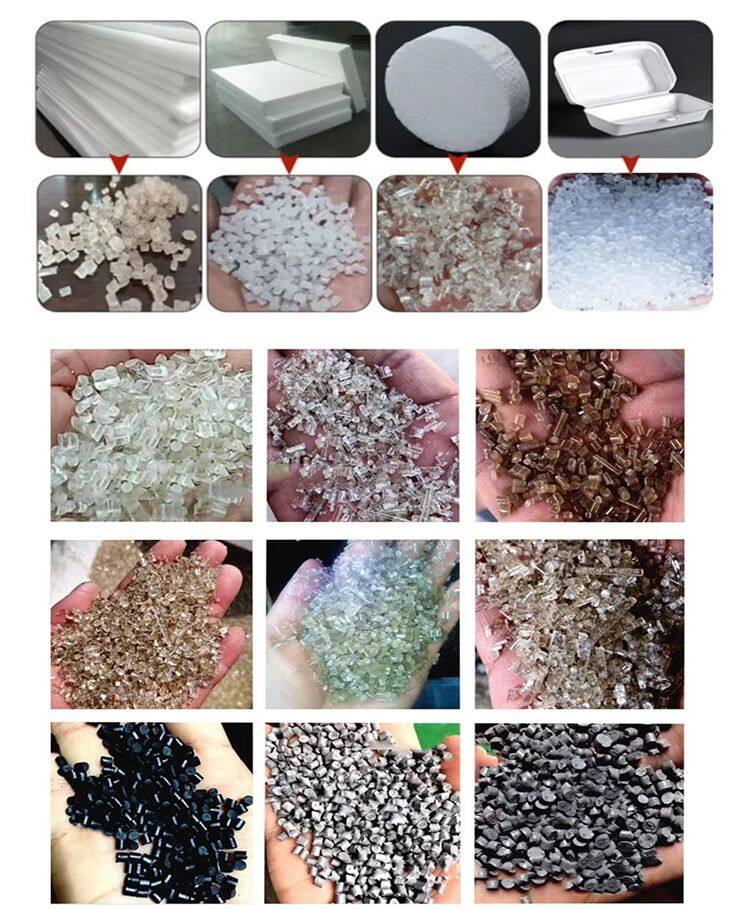 7.The produced plastic pellets can be used to manufacture recycled plastic products such as packaging, building materials, daily necessities, automotive parts, and agricultural tools, enabling the recycling of waste foam.