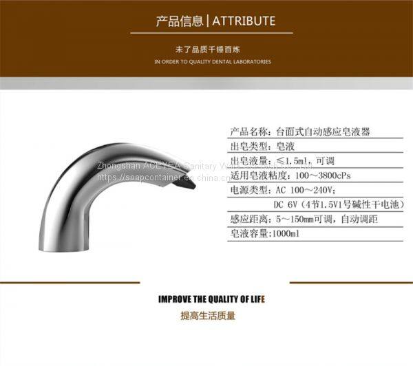 Zhongshan ACEYEA Sanitary Ware Co., Ltd. é um fabricante profissional de eletrodomésticos para banheiro inteligentes. A empresa introduziu tecnologia dos Estados Unidos e da Alemanha. Fornece e desenvolve um novo sab?o em gel com sensor do tipo torneira para clientes dos Estados Unidos, Alemanha, Reino Unido, Canadá, Hong Kong, Taiwan e outros lugares. Os produtos foram recentemente projetados por designers americanos e s?o vendidos no mercado interno e externo. Os produtos da empresa s?o fornecedores parceiros de muitas empresas de marcas conhecidas. Atualmente, os produtos s?o usados por empresas mundialmente famosas, como Baidu, Ocean Real Estate, Times Real Estate, Henglong Real Estate, Erie, Mengniu, Hilton Hotel, Vienna Hotel, Daoxiang Hotel, Guangzhou Zhou Dafu Financial Center, Shanghai American College, etc. Os produtos s?o amplamente utilizados em edifícios comerciais, shoppings, pra?as, hospitais, esta??es, aeroportos, hotéis e outros locais comerciais. Este produto adota tecnologia de indu??o automática infravermelha e pode induzir automaticamente o sab?o em gel. Cada vez que o dispensador de sab?o é quantificado, pode-se evitar o desperdício de líquido de lavagem das m?os. O produto é instalado no formato de torneira, o que garante que o excesso de líquido de lavagem das m?os caia na pia, evitando que as gotas comuns de sab?o sujem a superfície da mesa e a corroam. Todos os nossos produtos s?o feitos de lat?o cromado. Os produtos s?o feitos com tecnologia avan?ada de galvanoplastia multicamadas, o que garante a durabilidade do brilho dos produtos. O produto usa uma bomba de sab?o em gel desenvolvida com tecnologia sino - americana, com longa vida útil, baixo ruído, baixo consumo de energia, etc. Atualmente, nossos produtos s?o amplamente utilizados em muitos lugares públicos sanitários comerciais de alto nível no mercado interno e externo. Nossos produtos também s?o exportados para os Estados Unidos, Canadá, Turquia, índia, Malásia, Singapura, Hong Kong, Taiwan e outros lugares. Temos parcerias com agentes e distribuidores nos mercados dos Estados Unidos, Turquia, índia e outros, para estabelecer um relacionamento de longo prazo com qualidade superior. Bem - vindos parceiros de distribui??o internos e parceiros comerciais a estabelecerem rela??es comerciais de longo prazo conosco. Ofereceremos servi?os pós - venda e pré - venda perfeitos. Fique à vontade para entrar em contato conosco a qualquer momento! Prometemos que ofereceremos garantia gratuita de 2 anos para produtos comprados em nossa loja. Produtos danificados ter?o reparo gratuito dentro de 2 anos, sem custos e substitui??o de pe?as relacionadas. Clientes no Guangdong ter?o entrega por correio e manuten??o de pe?as de reposi??o. A pe?a principal do produto oferece garantia de qualidade de 5 anos. Substitui??o gratuita em caso de n?o - dano causado pelo homem em 5 anos! Bem - vindas todas as principais empresas a comprarem e vendam nossos produtos.