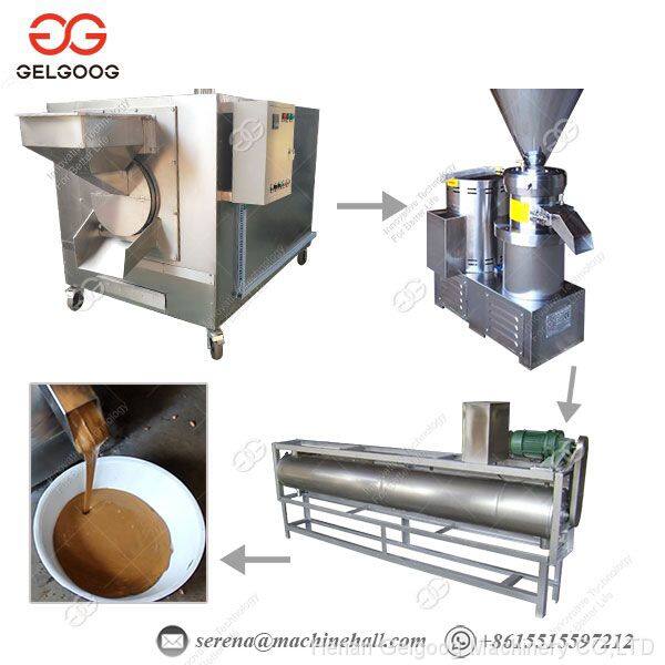 O principal equipamento da linha de produ??o de pasta de gergelim: forno de cozimento, esteira de resfriamento, descascador, esteira de sele??o, moedor grosso, moagem fina, caldeira de resfriamento, transportador, máquina de enchimento.