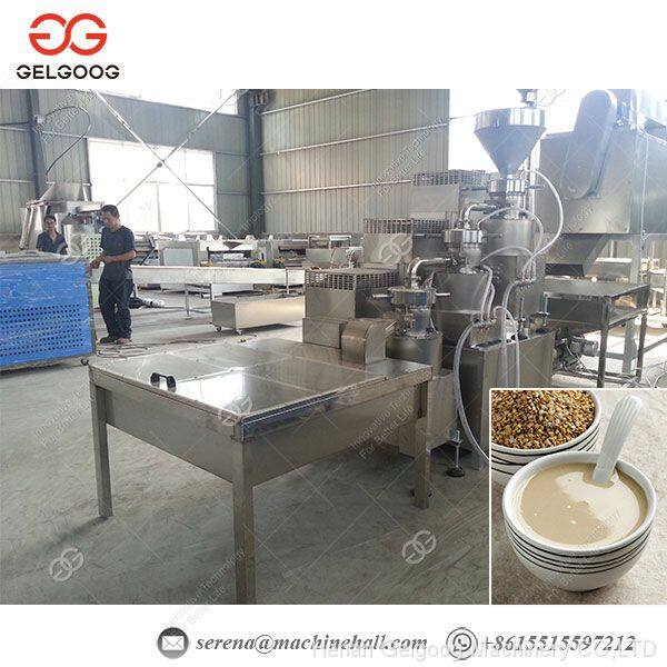 O fluxo de processo da linha de produ??o de pasta de gergelim: melhoria da matéria-prima - limpeza e remo??o de impurezas - secagem - resfriamento - sele??o - moagem grossa - moagem fina - resfriamento - desgaseifica??o - enchimento.
