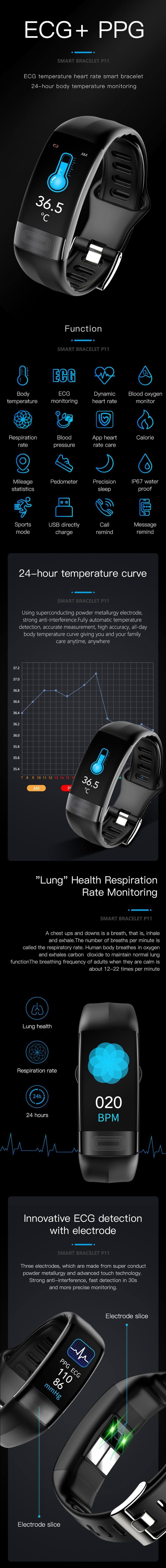 Relógio de monitoriza??o de eletrocardiograma, press?o arterial, oxigena??o do sangue, temperatura corporal e frequência cardíaca. Pulseira de exercício