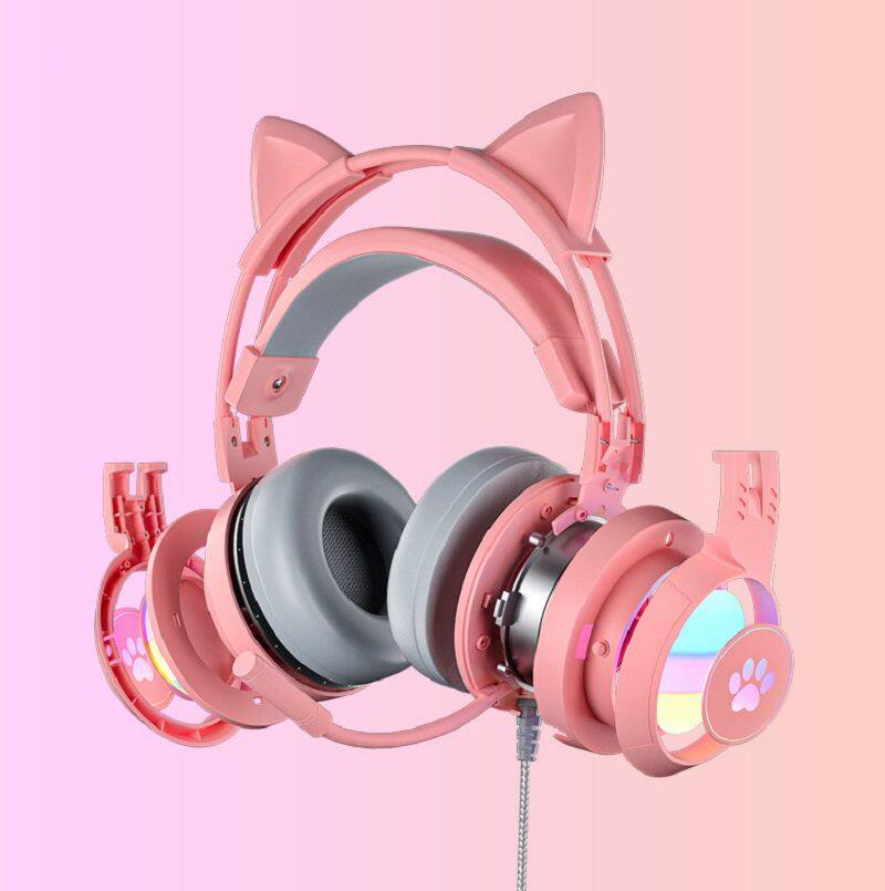 Fones de ouvido para transmiss?o ao vivo, fones de ouvido para jogos de e-sports, modelos de orelhas de gato, modelos de orelhas de cervo