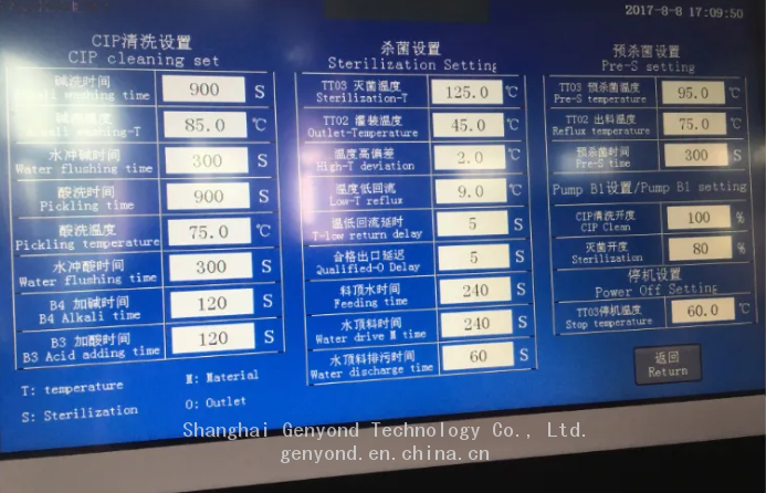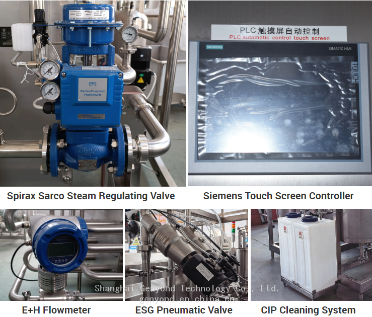 5℃→65℃(homogeneizador)→137℃(3-5S)→20℃-25℃. Este sistema UHT adota tratamento térmico ultra-alto para esterilizar produtos lácteos líquidos, bebidas de chá e sucos
