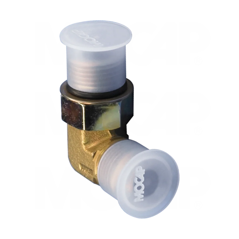 Tampa de prote??o para extremidade flangeada de tubo plástico antípóleno para roscas retas NPT, UNF e métricas