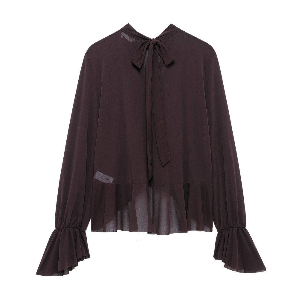 Camiseta de manga comprida com bot?es e pregas, fechada com cord?es, feminina, nova do outono de 2025, com design esguio e senso de tendência para camiseta interior