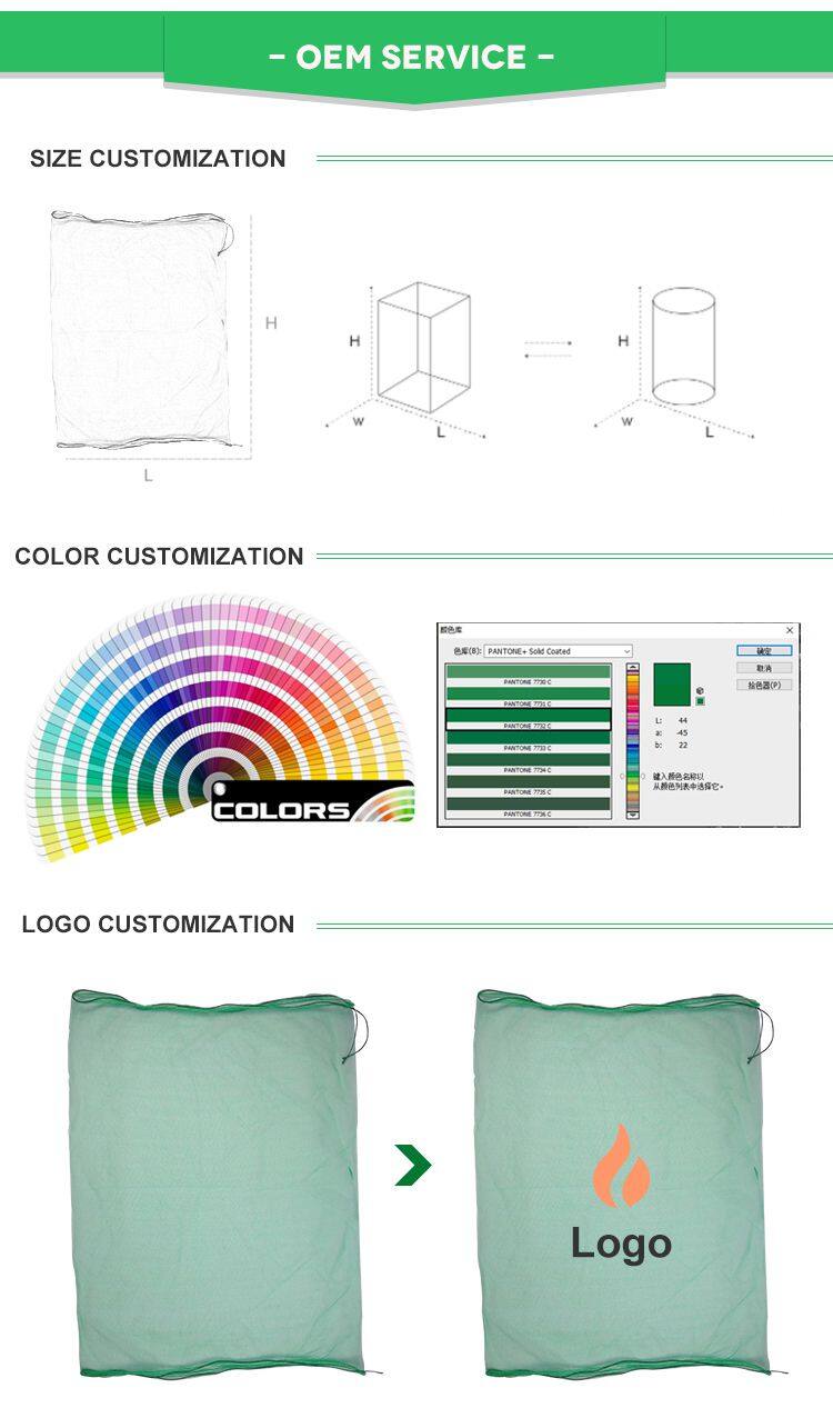 Fornecimento direto da fábrica, sacos de tecido de PE respiráveis personalizáveis de 25 kg/50 kg, pequenas redes de malha com cord?o de fecho para uso agrícola