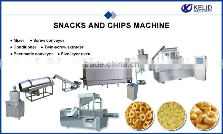 Линия производства хлопьев из кукурузы/завтракового хлопьевого завтрака использует кукурузный мука, рисовый мука, пшеничный мука и другие зерновые культуры в качестве сырья. После смешивания, экструзии, формовки, сушки, посыпки сахаром и охлаждения можно получить сладкие и хрустящие хлопья из кукурузы, завтраковые хлопьевые завтраки и т.д. Конечные продукты содержат богатые сложные углеводы и пищевые волокна. Они богаты микроэлементами, такими как витамины и минералы. Их можно употреблять непосредственно после смешивания с кофе, молоком, йогуртом или другими напитками. Эта линия производства многофункциональна и высокоавтоматизирована, легко управляемая. Вы можете производить различные формы хлопьев и закусок, меняя различные формы, такие как: кольцо, шар, лепесток, звезда, луна, буква и т.д.
