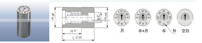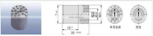 Кроме того, доступны японский стандартный разъемный штамп даты, штамп даты по стандарту ОПИЦ с заменяемыми элементами, перерабатываемые вставки и штамп даты для штамповой литейной формы резьбового инструмента.