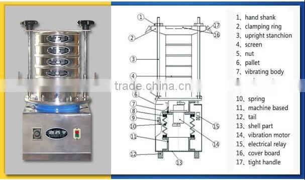 Тестовая вибросита, разработанная компанией Xinxiang Dahan Vibrating Machinery Co., LTD, представляет собой механический анализатор с регулярной автоматической остановкой, гарантирующий повторяемость испытаний и простой в эксплуатации с полным функционалом. Может одновременно с высокой точностью разделять частицы гранулированных материалов на 2 - 8 фракций. Может быть использована для анализа крупности шлама и содержания примесей, имеет низкий уровень шума, небольшой вес, платформа может работать без крепления.