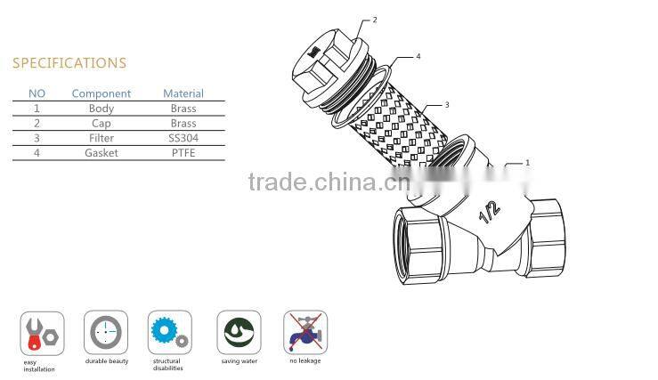 АРТ.4008 Китайский оптовый изготовитель и быстрый поставщик кованной латунной обратной клапаны типа Y с фильтрующим ситечником из нержавеющей стали для воды
