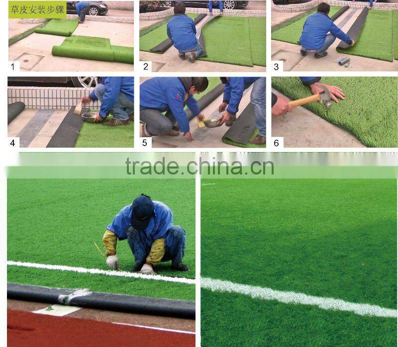 Особенности: | 1: Чистый цвет или четыре цвета с двумя различными видами травы 2: Используется на футбольном поле или как декоративный элемент вокруг дома 3: Легко монтируется с использованием клея и железных гвоздей |