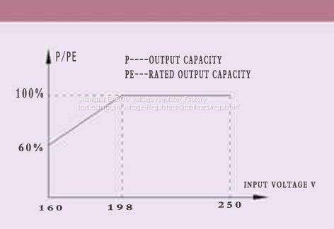 5.4 Когда входное напряжение ниже 198В, выходная емкость регулятора снижается, поэтому необходимо уменьшить нагрузку, чтобы избежать перегрузки, конкретные характеристики см. на рисунке (1);