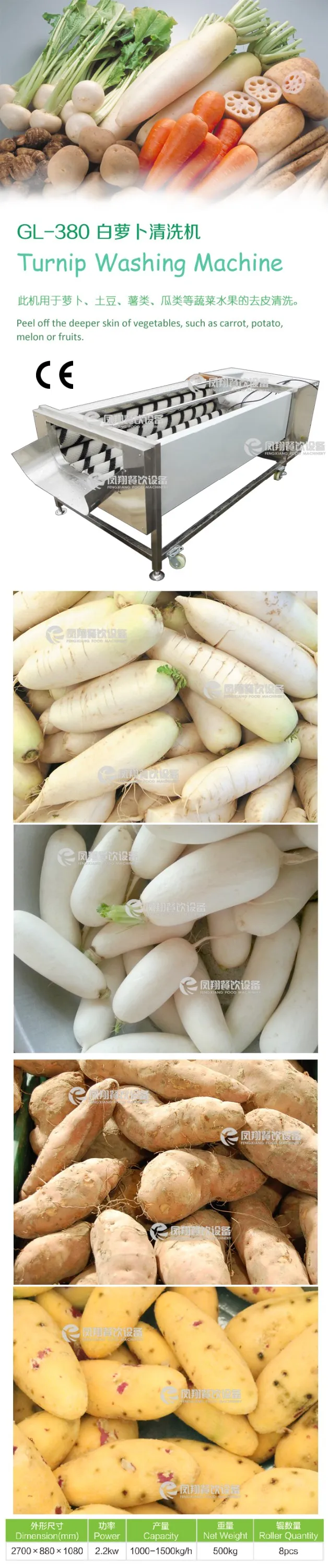 GL-380 Машина для мойки и очистки овощей и фруктов подходит для очистки более толстой кожи овощей, таких как морковь, картофель, тыква или фрукты.