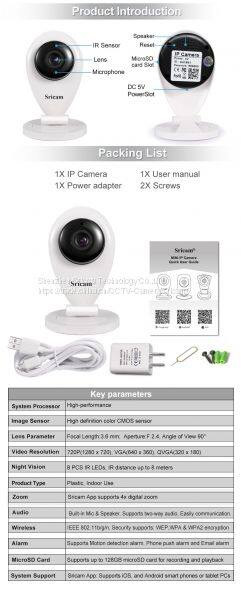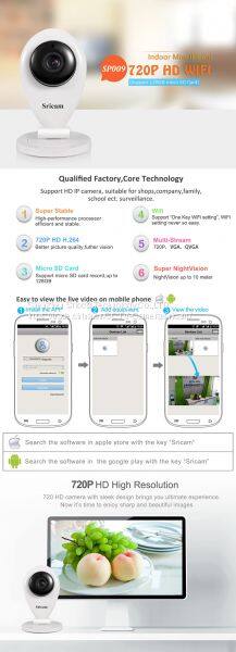 Sricam SP011 Продажа фабрики в Шэньчжэне Камера IP беспроводная для внутренних помещений с панорамной и телевизионной функциями