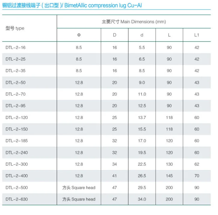 Главная > Продукты > Клеммные соединители кабелей > Wanxie DTL-2 серия биметаллический клеммный блок с алюминиевым сжатием и медно-алюминиевым наконечником
