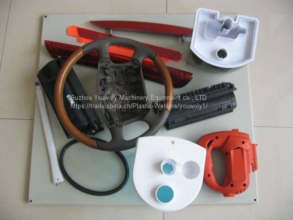 Автомобильная промышленность: | Пластиковые детали для автомобилей и мотоциклов, аккумуляторы, перчаточный ящик, пластиковый топливный бак, коллектор впуска, пластиковый глушитель, расширительный бак, передний угловой фонарь, задний фонарь, приборы, отражатели, защитный кожух для ручной сварки в автомобиле, сварной защитный экран на автомобильной двери, автомобильные коврики (сварка), ремонтная сварка автомобильных бамперов, теплоизоляция дверей из ваты, дворники сидений, крышка двигателя, точечная сварка крышки радиатора и т.д. |