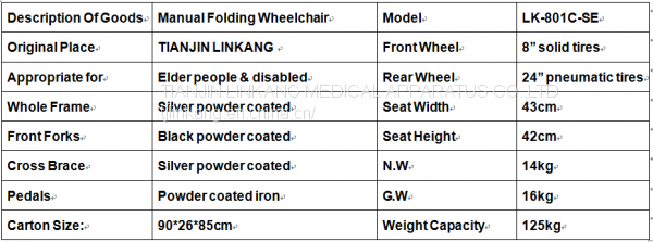 | Модельный номер | LK801C-SE | Тип | Инвалидная коляска |