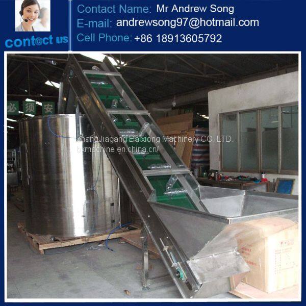 ??? Эта машина используется для упорядочивания беспорядочно расположенных полиэтиленовых бутылок. Беспорядочно расположенные бутылки подаются в секцию хранения бутылок упорядочивающей машины. За счет толкающей силы вращающегося диска бутылки упорядочиваются в положение с горловиной вверх и подаются на следующий этап с помощью системы транспортировки бутылок воздушно-пневматического типа.
