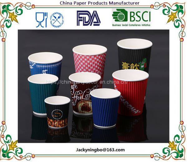 Нинбо PartyKing Качественные одноразовые термосистемные бумажные чашки для горячего кофе. Стильный современный дизайн с двойной стенкой и гофрированной поверхностью. Чашка для кофе.