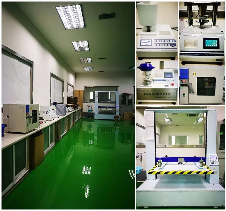тестер долговечности складывания, испытательная машина для разрывной прочности, испытательная машина для сопротивления прокола, испытательная машина для прочности боксов, испытательная машина для прочности на сдавливание, испытательная машина для жесткости, измеритель толщины, испытательная машина для долговечности печатной краски, измеритель плотности, количественные измерительные инструменты, прибор для отбора проб, электрообогреваемая термостатическая сушильная печь и т.д.