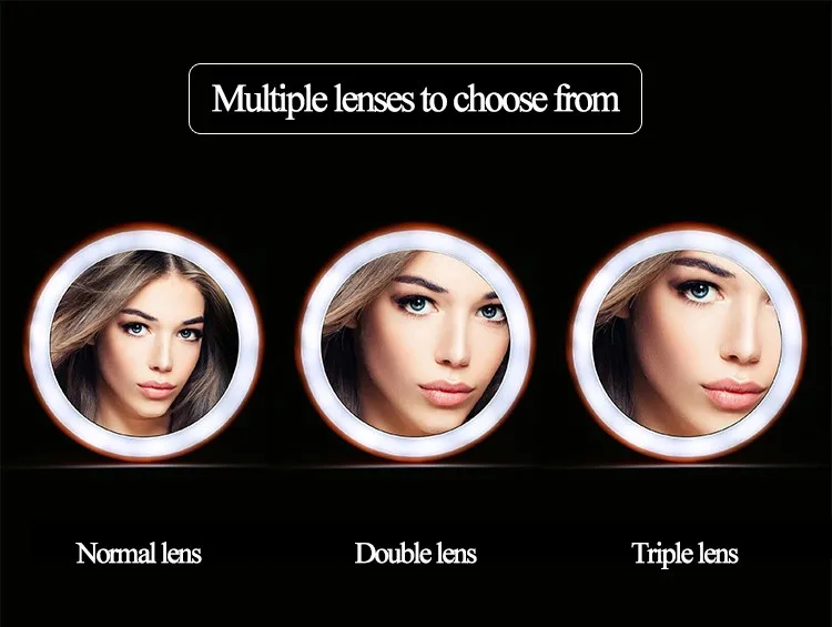Трисекционный накладной зеркало с подсветкой LED для макияжа с различными цветами