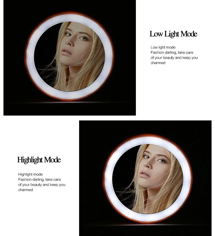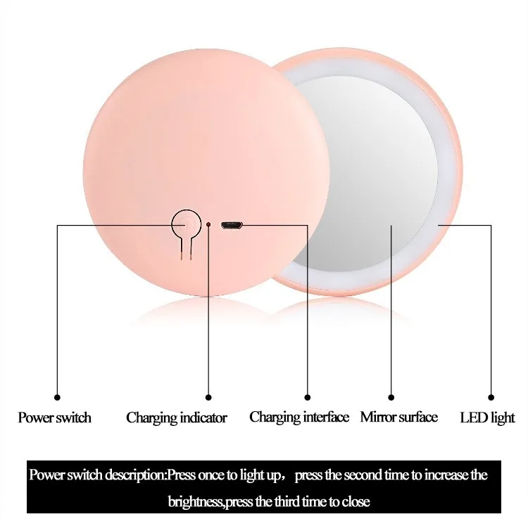 - Небольшое портативное ручное карманное светящееся светодиодное косметическое зеркало для макияжа