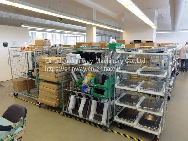 Тележка Shinway logistics , также называемая тележкой для погрузки или ячеичной тележкой, является мобильным контейнером для транспортировки и хранения материалов, оснащенным четырьмя роликами. Она часто используется для логистической доставки в крупных супермаркетах или для логистического оборота между производственными операциями на фабриках.
