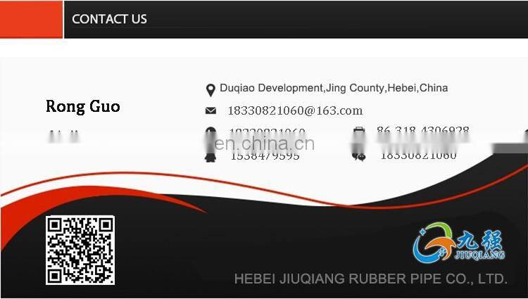 Hebei Jiuqiang Rubber Pipe Co., Ltd. обладает передовой наукой и технологиями, передним производственным и испытательным оборудованием, а также имеет уникальную систему управления кадрами и надежный систему обеспечения качества. Мы тепло приветствуем новых и старых клиентов из разных стран и регионов мира к сотрудничеству с нами и совместному развитию с помощью высококачественных продуктов.