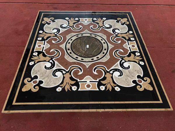 Плитка для пола, изготовленная водоструйной резкой, смесь бежево-мараморного, красного мараморного и темноцветного мараморного материала, Floormedallinns