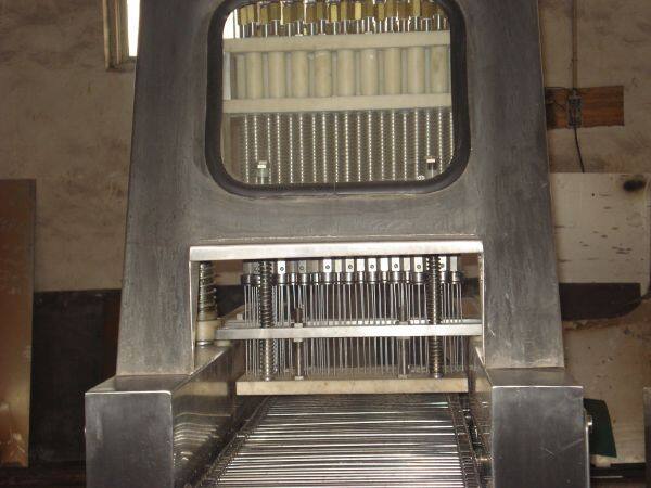1) Автомат для инъекции рассола использует зубчатый шаговый механизм для подачи мяса с точным шагом. Материал мяса поддерживается тремя демонтируемыми решетками. Иголка ввода управляется пружиной, что позволяет производить инъекцию в мясо с костями.