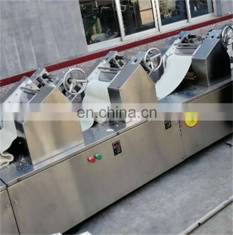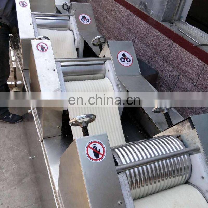 Рабочий принцип лапшечного станка заключается в том, чтобы прессовать муку за счет относительного вращения муковых роликов, чтобы образовать лепешку теста, а затем резать ее с противоположной стороны ножа для резки переднего головного блока, чтобы образовать лапшу.
