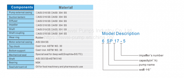 | Модельный номер | 6SP17/5 | Применение | Погружной | |