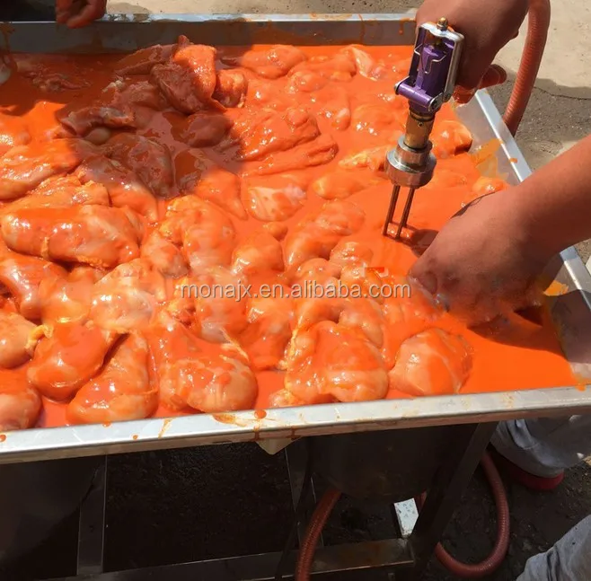 Эта машина предназначена для инъекции рассола и добавок в мясо и для полного маринования мяса, а также для инъекции подготовленной воды, чтобы мясо стало более мягким и сочным, улучшить качество мяса и повысить производительность. Ручная маринадная инжекционная машина используется для полного маринования мяса путем инъекции соленой воды, крахмала, соевого белка и добавок, благодаря чему мясо становится более мягким и сочным, улучшается вкус мяса и повышается производительность мясных продуктов.