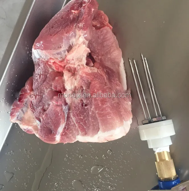 Эта машина может вводить рассол и другие мариновочные жидкости в мясной блок или мясо с костью, сокращая время маринования.