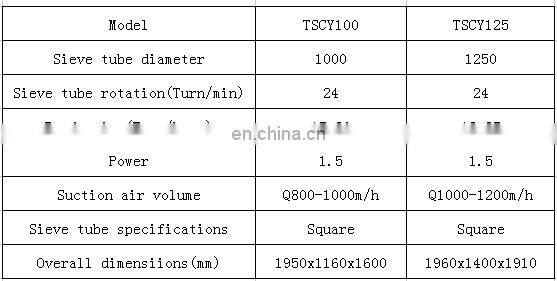 Модели TSCY63, TSCY80, TSCY100, TSCY125 цилиндрические первичные очистители нашей компании - это новое многофункциональное и эффективное оборудование для удаления примесей. Оно сочетает в себе преимущества аналогичных продуктов по всему миру, обладает полным набором функций, компактной конструкцией, красивым внешним видом, плавным ходом, низким уровнем шума и высокой эффективностью удаления пыли и примесей. Имеет двойную функцию удаления крупных примесей и легких примесей, по сравнению с отечественными аналогичными продуктами имеет очевидные преимущества.