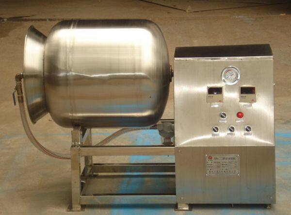 Вакуумный мясной тумблер работает в вакууме. По физическому принципу удара мясо вращается вверх и вниз внутри барабана, сталкиваясь, бьется друг о друга, что приводит к равномерному распределению массажа и обеспечивает вкусную мариновку. Мясо может равномерно впитывать маринад, увеличивая адгезию и эластичность мяса. Когда в машину добавлен помягчающий мясо агент, барабан устройства медленно и плавно вращается, обеспечивая равномерное сжатие и массаж мяса, ускоряя высвобождение солеворастворимых белков в мясе, а также обеспечивая слияние добавленных материалов (крахмала и т. д.) с белками мяса, улучшая структуру мяса и увеличивая выход продукции. Данный продукт обладает такими характеристиками, как помягчение мяса, увеличение водоудерживающей способности мяса, хороший вкус, красивый цвет и текстура, идеальное нарезание и высокий выход продукции.