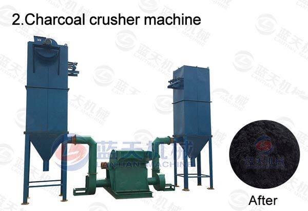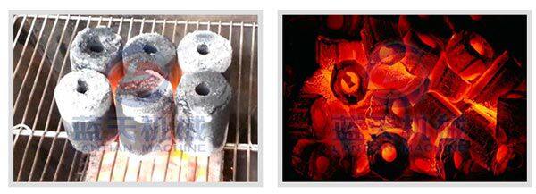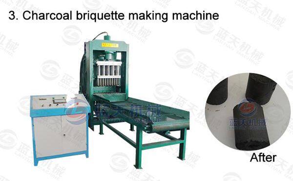 При начале обработки, если сырьем являются кора кокоса, кора пальмового дерева и т.д., ее необходимо подвергнуть карбонизации. После карбонизации сырье необходимо измельчить на дровяной дробилке, затем сырье подается в смеситель с связующим для лучшей формовки. Далее сырье поступает на пресс для брикетования древесных углей для прессования и формовки. Если готовый материал необходимо высушить, сушилка для брикетов древесного угля бренда Lantian может высушить сырье. Готовые продукты могут быть использованы в бытовых или промышленных котлах.