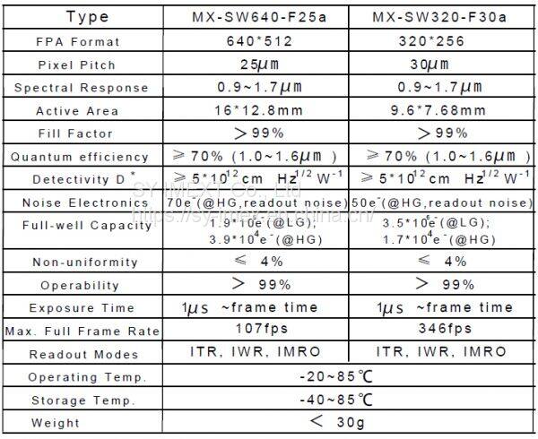 - Формат матрицы ФПА: 320 x 256 - Шаг пикселя: 30 мкм - Низкий темновой ток - Высокая квантовая эффективность - Высокая работоспособность | |