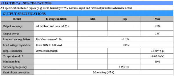 Преобразователь постоянного тока DC DC с сверхнизким потреблением энергии, 1 Вт, с двойным выходом, изолированный, нерегулируемый