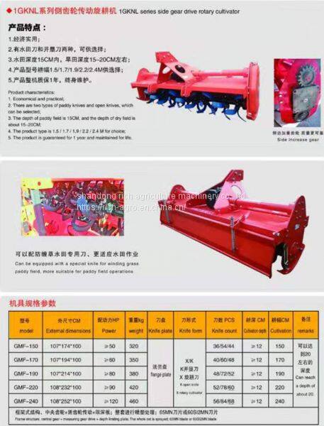107*194*100 Глубина обработки сухих полей 15 - 20 см Малый роторный культиватор с открытой ножовой группой K
