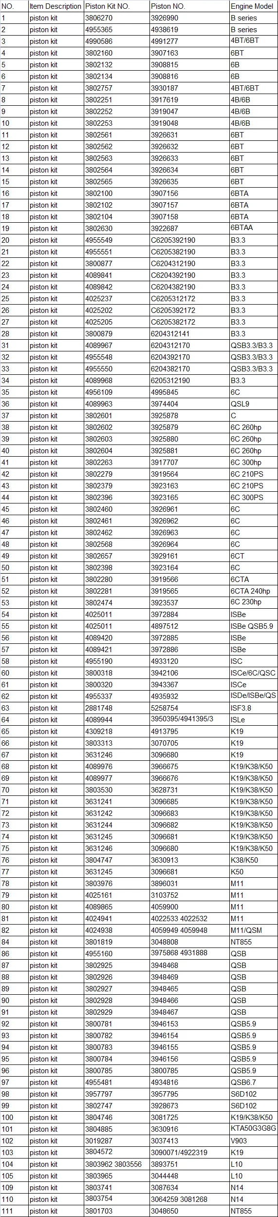 Аутентичные запчасти двигателя B3.3 из США 4089968 C6205312190 поршень для Cummins