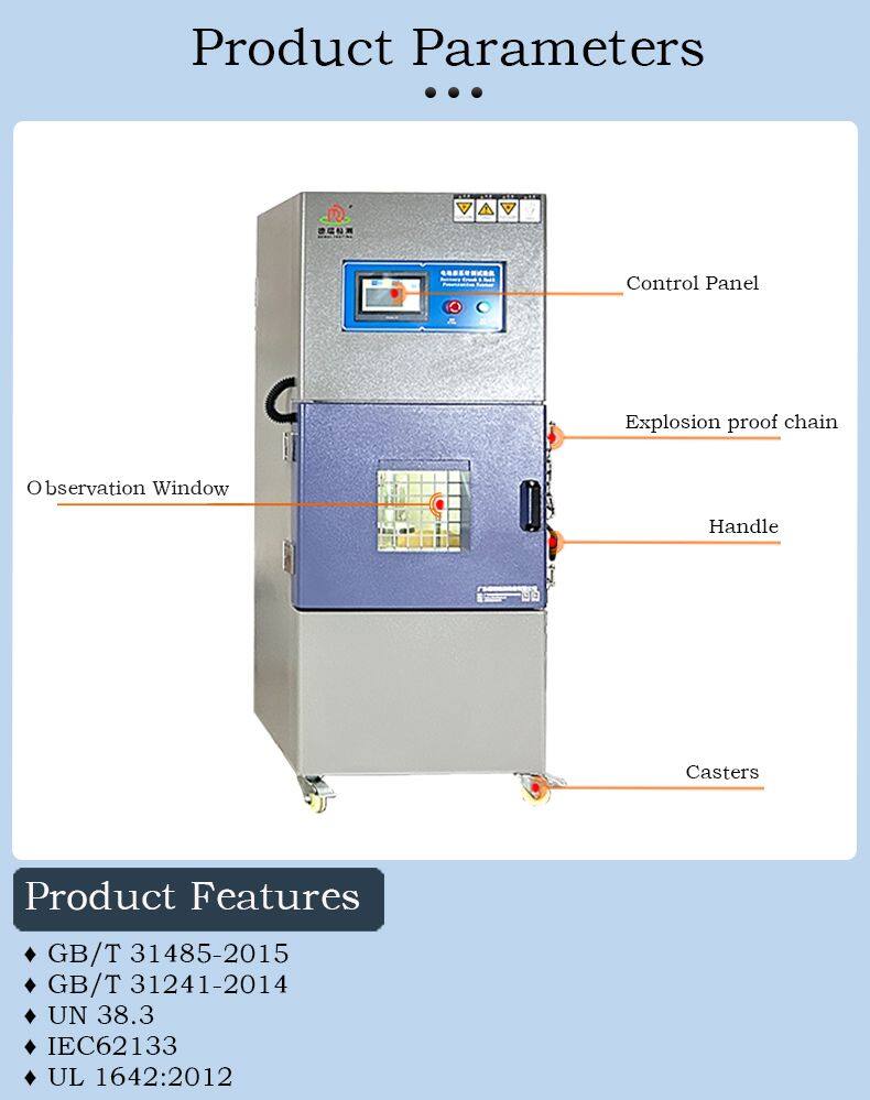 To ensure that the EV battery puncture test chamber meets international standards, manufacturers should adhere to the following certifications: