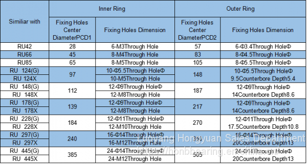 RU серия (интегрированный тип внутреннего/наружного кольца) Поскольку предусмотрены монтажные отверстия, данная модель не требует прижимного фланца или корпуса. Кроме того, благодаря интегрированной конструкции внутреннего и внешнего кольца и наличию шайб, ее характеристики минимально зависят от процедуры монтажа, что обеспечивает стабильную точность вращения и момент.
