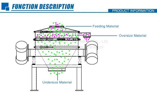 Однослойный виброэкран высокого качества с прямым выводом для сепарации порошков представляет собой новую высокоточную машину для просеивания тонких порошков. Он использует вертикальный вибрационный двигатель в качестве источника возбуждения. Этот двигатель оснащен с обеих сторон эксцентричными молотками, которые преобразуют вращательное движение двигателя в горизонтальное, вертикальное и наклонное движение. Затем молотки передают движение на поверхность сита для просеивания. В настоящее время вращательные просеивальные машины широко используются в фармацевтической, пищевой и других отраслях промышленности.