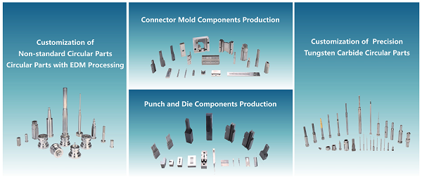 - Основные продукты: Детали для прецизионного машиностроительного оборудования , Ненормативные круглые детали , Детали прецизионных штампов металлов , Детали прецизионных пластиковых форм , Круглые детали из твердого карбида вольфрама , Запасные части пластиковых форм , Детали штампов для соединителей , Штифты и втулки сердечников , Детали штампов из твердого карбида вольфрама , Формы порошковой металлургии , Численно-контролируемые алюминиевые детали , Детали