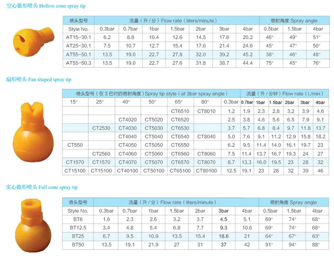 - Основные продукты: плоский веерный насадок, полный конический насадок, зажимной насадок, воздушно-атомизирующий насадок, воздушно-струйный насадок, спиральный насадок, металлический насадок для растяжения и формовки потока/воздушной душевая установка насадка, насадок смесителя-эжектора, пустотелый конический насадок, пневматическая пистолет для распыления, трубопроводный фиттинг быстросъемный зажим, трубопроводный фиттинг
