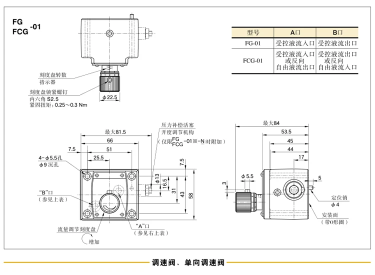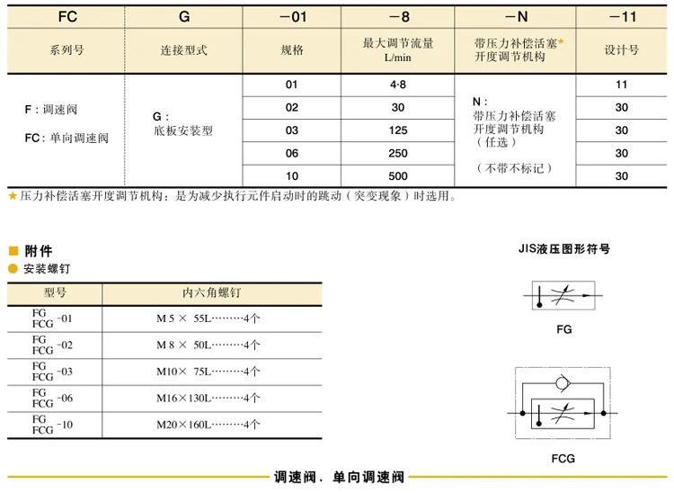 Серия Yuken FG-01/02/03/06 Гидравлический регулятор потока и обратный клапан с креплением на подплату