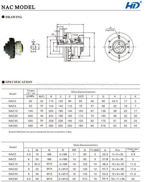 Эта пневматическая муфта NAC2 CSMP2 HDC-02 может передавать высокий крутящий момент. Ниже приведены подробные технические данные для вашего ознакомления: