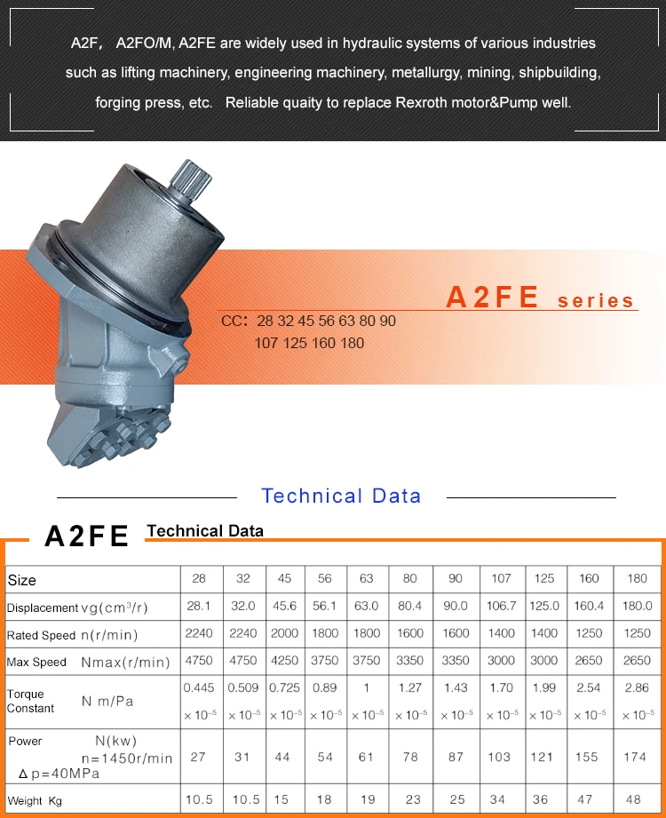 Тип A2FE160 Гидравлический насос-мотор с осевыми поршнями постоянного действия объемом 160 см3, 3600 об/мин, типа A2FE 160, совместимый с rexroth, продается с муфтами