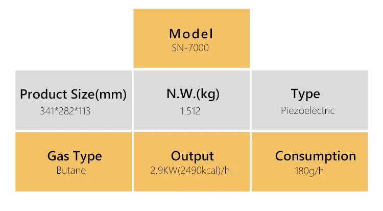 341*282*113  | Бутан  | 2,9 кВт или 2490 ккал/ч  | 180 г/ч  | Пьезоэлектрический  |